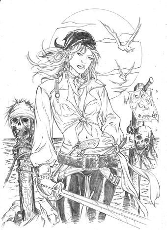 Daniel Karhunen commissioned me to ink this 11X17 blueline pinup of his character Wolalina over the pencil art of Adriano Batista, like the Bayani model sheets, all new to me. It is intended for publication in a graphic novel but being that I finished it on 11/1/2008 I figured it might as well get some attention from my gallery.